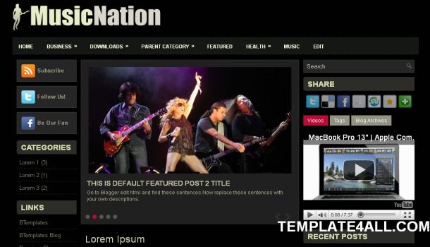 Black Gray Music Blogger Template, One Of The Free Music Magazine Blogger Templates Layout Design For Online Music Blogging, This Blogspot Template is Adapted From Wordpress With Two Columns, Right Sidebar, Jquery Slideshow Featured Content, Gray and Black Colors, Posts Thumbnails, Web2.0 Illustration, Ready Twitter, Ready RSS, Ready Social Bookmarking Buttons, Fixed Width and English Language, This Template Was Tested On IE 6.0 & 7.0, Mozilla Firefox, Opera 9.02, Google Chrome and Safari Web Browsers, 100% CSS, Compact, Valid CSS/HTML, Don't Forget To Share This Article With Your Friends If You Like It, That Can Be Helpful...